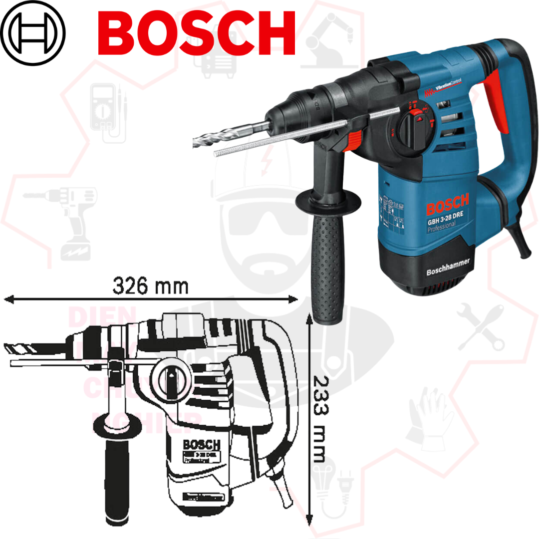 Công ty Cổ phần Điện máy Chuyên nghiệp hân hạnh giới thiệu đến Quý khách hàng sản phẩm máy khoan búa Bosch GBH 3-28 DRE, một công cụ hỗ trợ đắc lực cho các công việc khoan đục chuyên nghiệp, được tin dùng bởi các nhà thầu xây dựng, kỹ sư, và thợ thủ công lành nghề trong nhiều lĩnh vực.